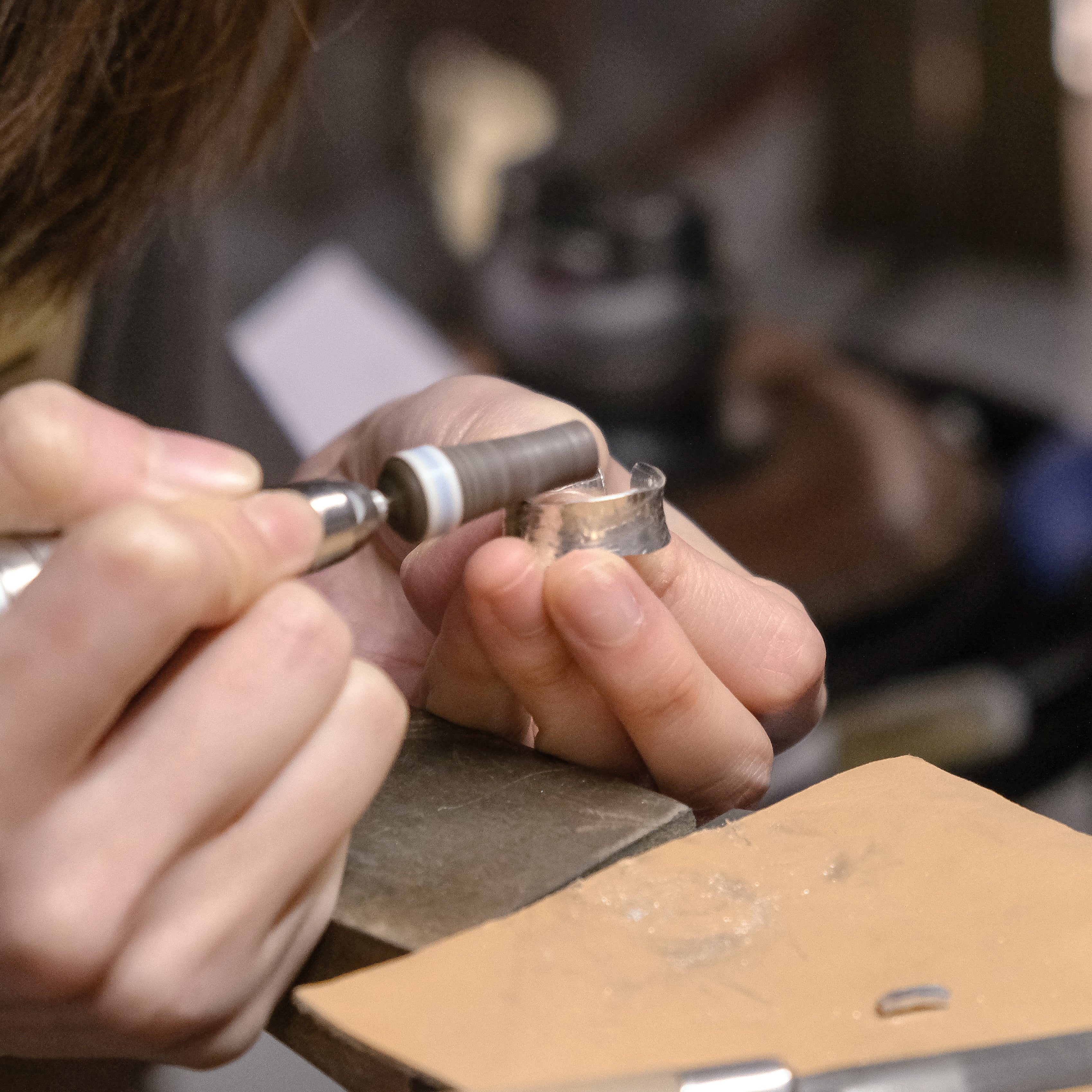 由客席金工導師楊卓勲 (Hugo Yeung) 帶領的銀器首飾工作坊,貫徹簡約美學的理念,從一件首飾-錘紋圓戒開始出發,讓學員學習運用基礎金工技巧,繼而能學習不同金工技巧,製作五樣不同首飾,包括戒指,耳環,吊墜,手鐲。